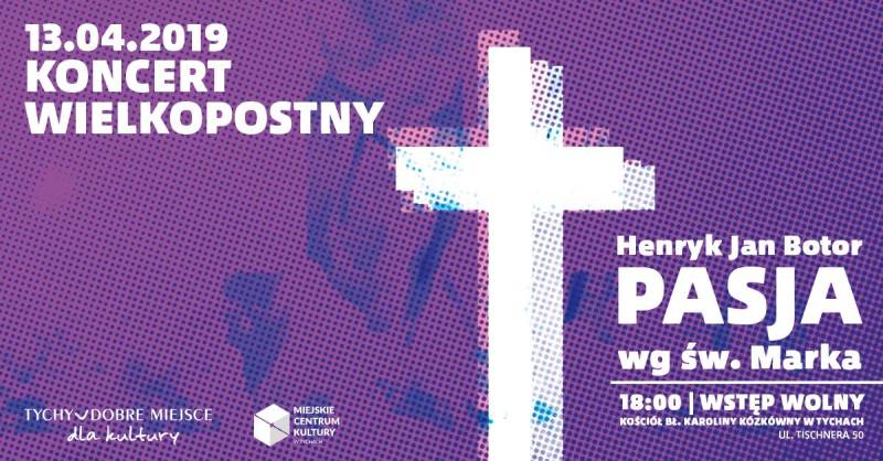 Zapraszamy na Koncert Wielkopostny, podczas którego zabrzmi „Pasja wg św. Marka” Henryka Jana Botora. Wydarzenie odbędzie się 13 kwietnia o godzinie 18.00 w kościele pw. błogosławionej Karoliny Kózkówny w Tychach i poprzedzi obchody Niedzieli Palmowej.