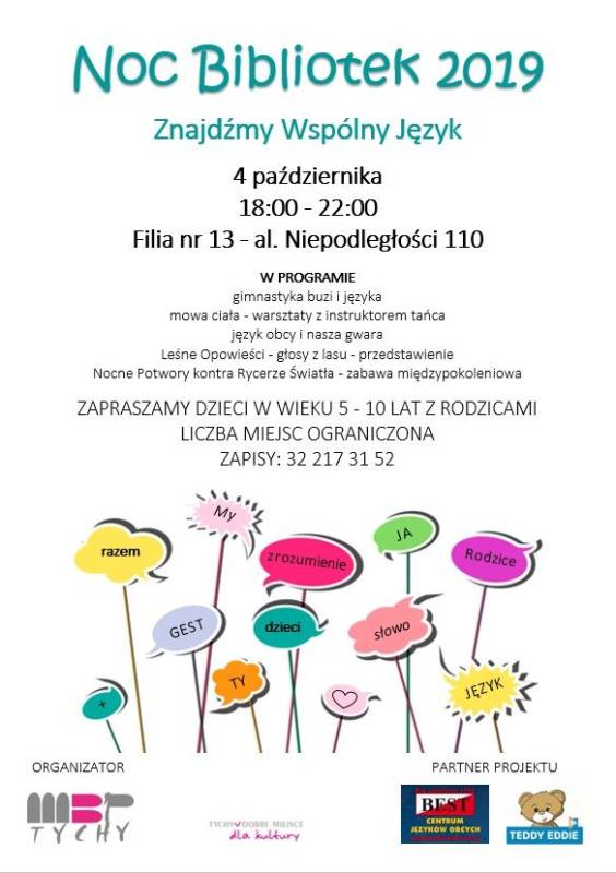 Dzieci w wieku 5-10 lat wraz z rodzicami zapraszamy na Noc Bibliotek.