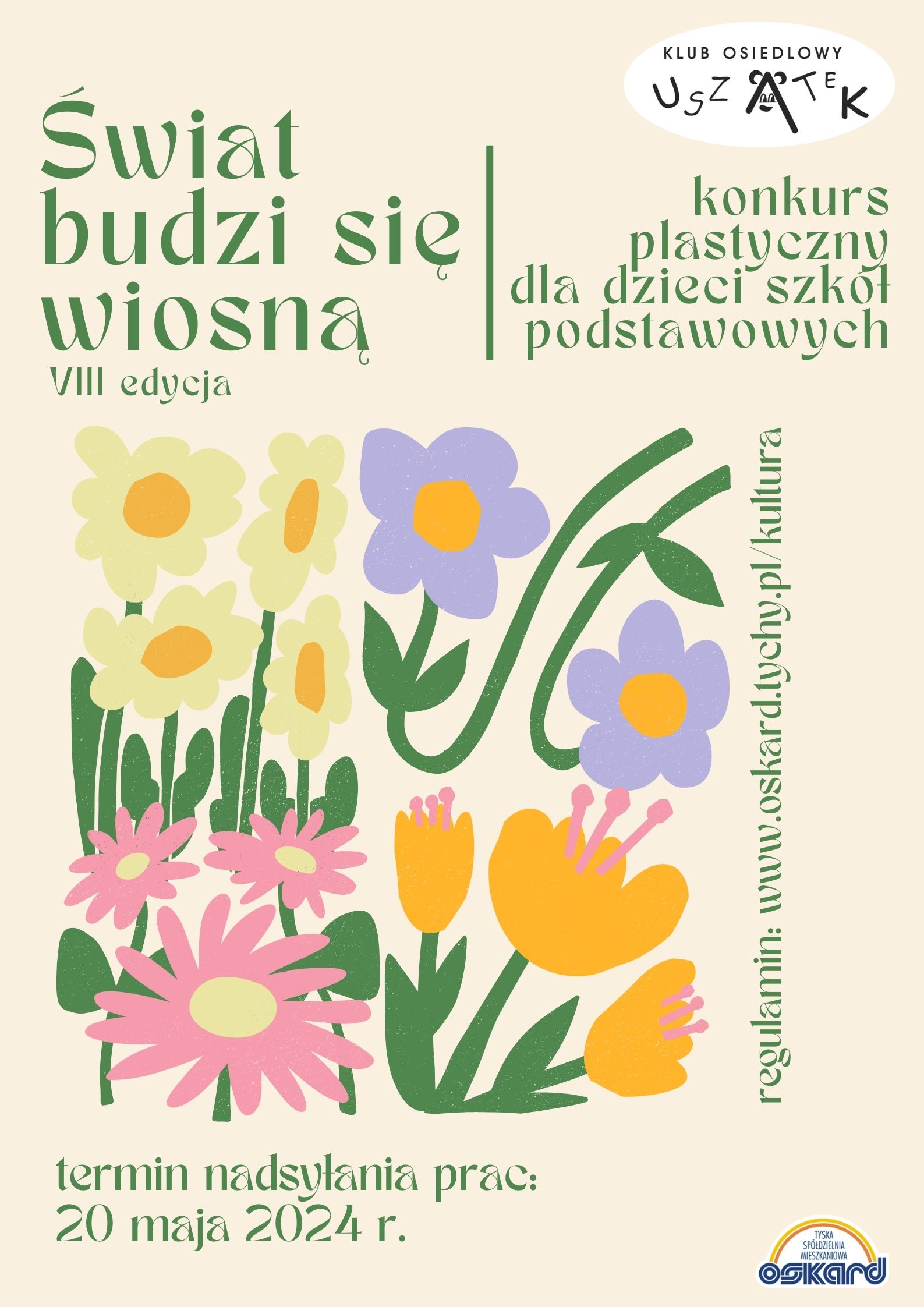 Klub Osiedlowy „Uszatek” zaprasza dzieci i młodzież szkół podstawowych do wzięcia udziału w VIII edycji konkursu plastycznego pt. „Świat budzi się wiosną”.