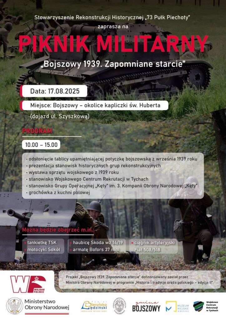Przed nami wyjątkowe wydarzenie jakim jest PIKNIK MILITARNY „Bojszowy 1939. Zapomniane starcie”, którego organizatorem jest Stowarzyszenie Rekonstrukcji Historycznej „73 Pułk Piechoty”.