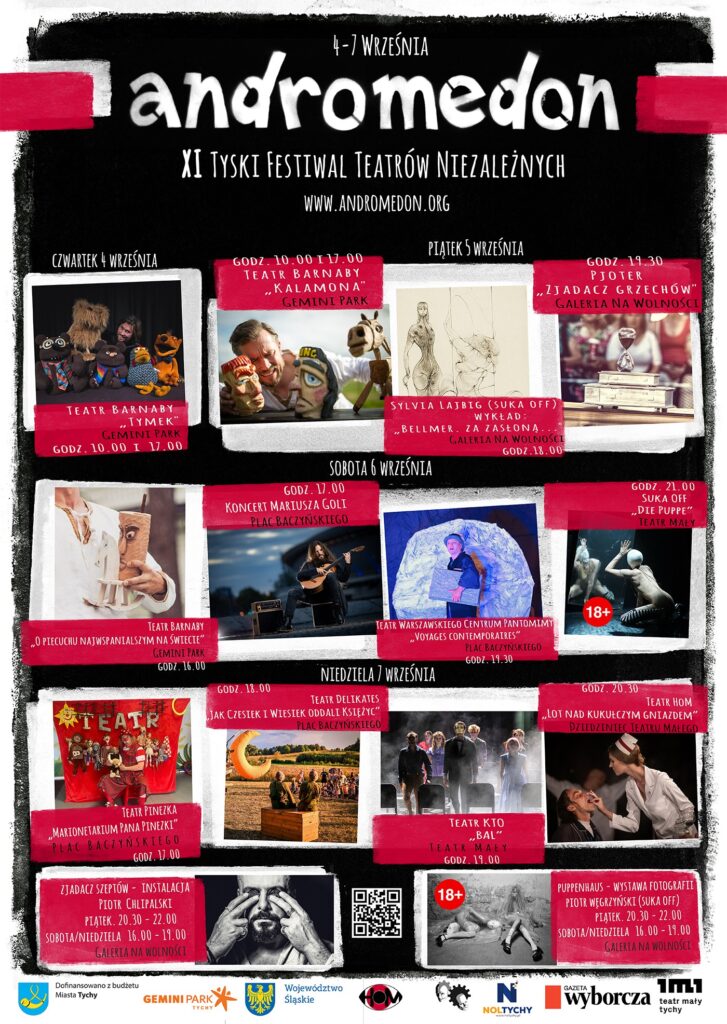 Podczas festiwalu, który organizowany jest w ramach miejskiego programu dotacji Tyskich Inicjatyw Kulturalnych, prezentowane są zarówno widowiska pełne humoru i magii, jak i spektakle czy wystawy, które prowokują do refleksji, zadają trudne pytania i przełamują tabu. Andromedon to także przestrzeń spotkania – między twórcami i widzami, sztuką wysoką i działaniami ulicznymi, tradycją i nowoczesnością. W tym roku organizatorzy przygotowali naprawdę sporo wydarzeń: spektakle, koncerty, wykłady, wystawy i instalacje, które na kilka dni przemienią Tychy w pulsujące centrum sztuki.