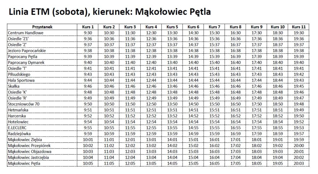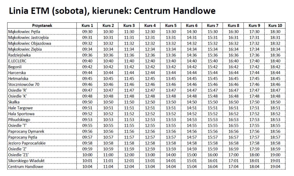 Sobota (20.09): Mąkołowiec Pętla ↔ Centrum Handlowe