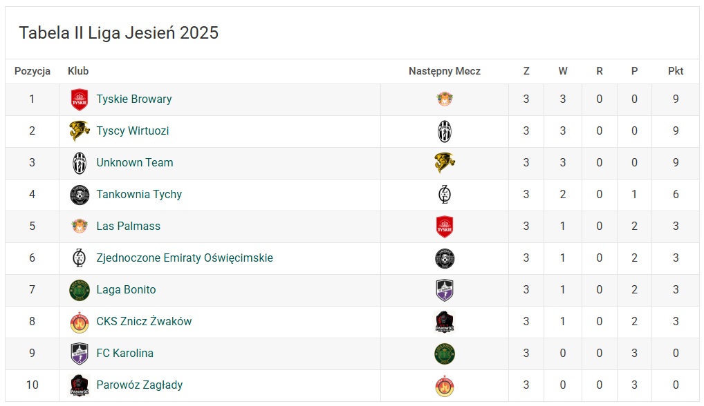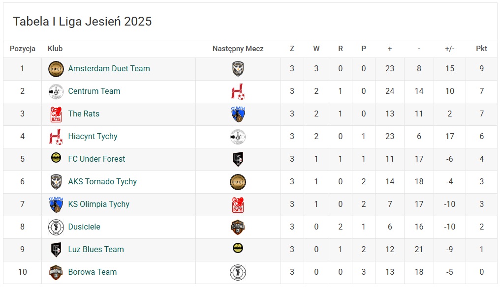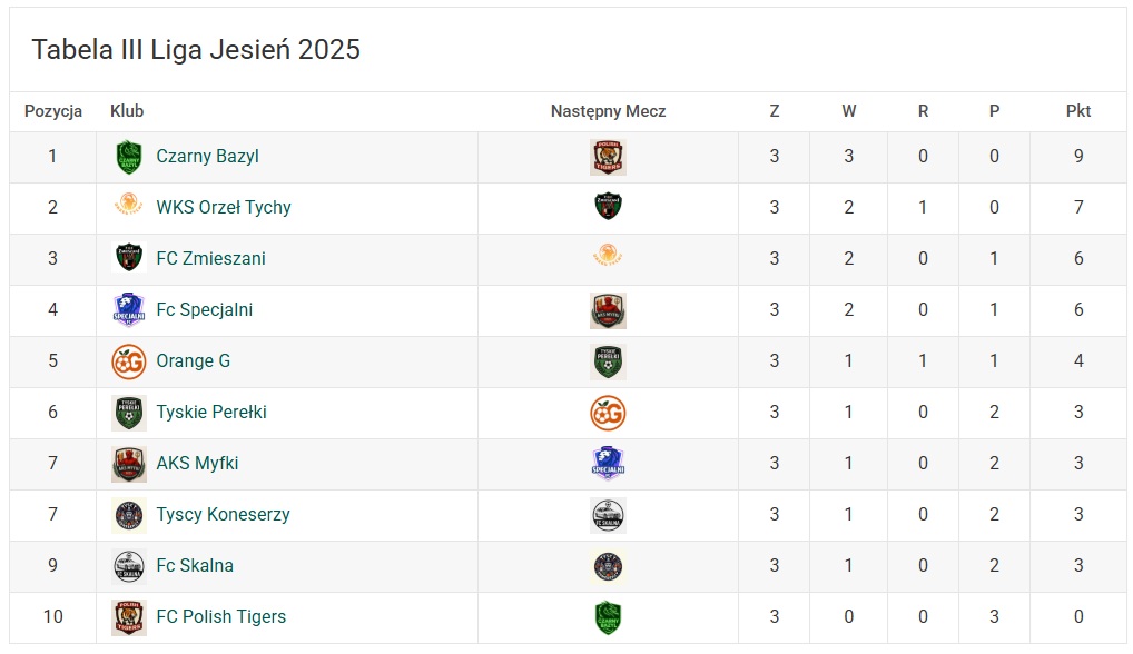 Trzecia kolejka Tyskiej Ligi Szóstek 2025 Jesień za nami. Poniżej prezentujemy wyniki spotkań oraz tabele 1, 2 i 3 ligi.