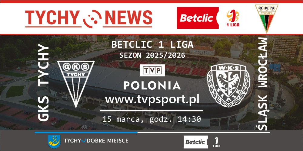 Już dzisiaj (niedziela, 15.03.2026 r.) o godzinie 14:30 GKS Tychy w 25 kolejce Bectclic 1 ligi podejmie na Stadionie Miejskim przy ulicy Edukacji Śląsk Wrocław.
