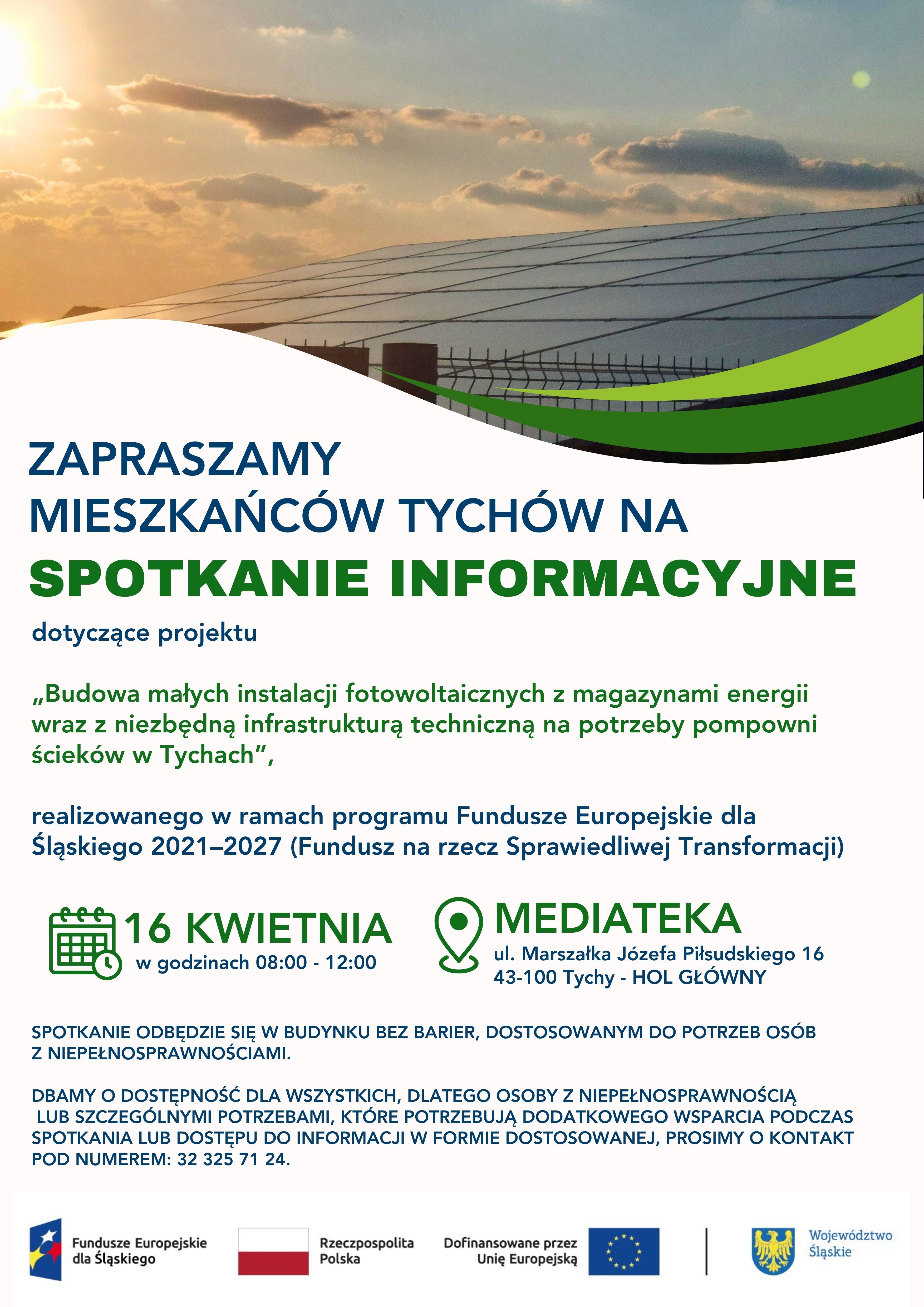16 kwietnia w godzinach od 8:00 do 12:00 zapraszamy mieszkańców Tychów na spotkanie informacyjne, które odbędzie się w Mediatece, w holu głównym.